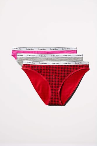Calvin Klein Damen 3er Pack Slips Bikini Form Baumwolle mit Stretch, Mehrfarbig (Blotched Plaid+Adrenaline Rush/Blac), M