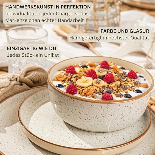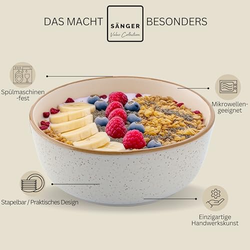Sänger Rio Creme| Steingut Müslischalen Set 6 teilig, Schüsseln für 6 Personen, Schalen multifunktional, kratz- mikrowellen- spülmaschinenfest, Tiefe Teller cremefarben 600 ml | VALUE COLLECTION
