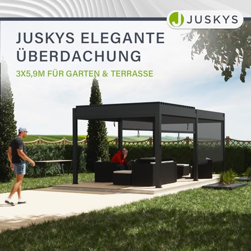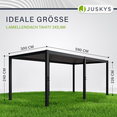 Juskys Lamellendach Tahiti 3x5,9 m - Stahl Pergola - Terrassenüberdachung stabil & wetterfest - Überdachung für Garten & Terrasse - Bausatz Anthrazit