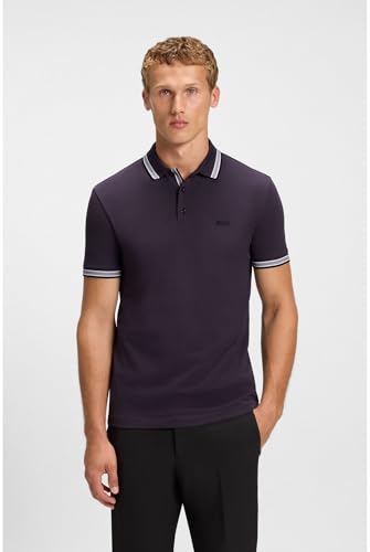 Poloshirt BOSS GREEN Paddy, Herren, Gr. M, medium lila517, Jersey, Obermaterial: 100% Baumwolle, unifarben, regular fit, hoch geschlossener Ausschnitt, eng Bündchen, Shirts, mit kontrastfarbenen Streifen am Kragen