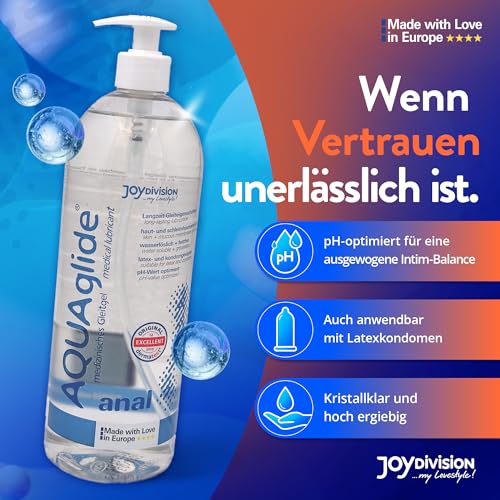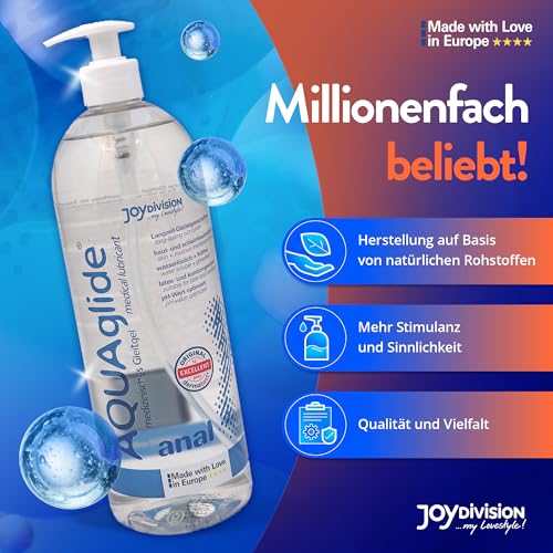 Joydivision Original AQUAglide Anal 1000 ml Gleitgel, Geruchsneutral, pH-optimiert & transparent, wasserbasiertes & kristallklares Gleitmittel, für Latex-kondome geeignet