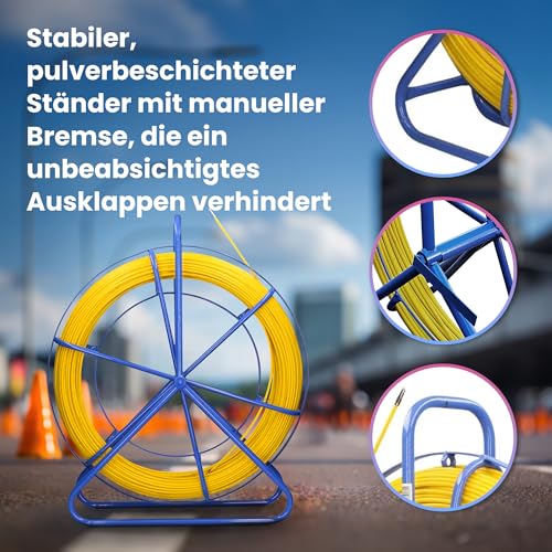 Extralink FRP Glasfaserstab 6mm Durchmesser 200m,Leerrohr mit Rollenhalter und Bremse,Einziehfeder mit hoher Elastizität und Festigkeit,Fiberglas Kabel Zubehör für optimale Installation,Glasfaser