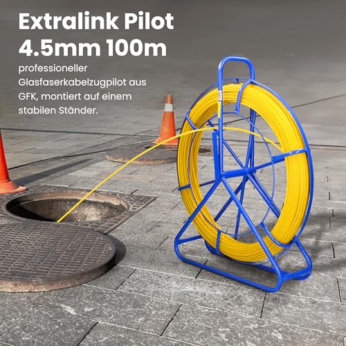 Extralink FRP Glasfaserstab 4.5mm Durchmesser 100m,Leerrohr mit Rollenhalter und Bremse,Einziehfeder mit hoher Elastizität und Festigkeit,Fiberglas Kabel Zubehör für optimale Installation,Glasfaser