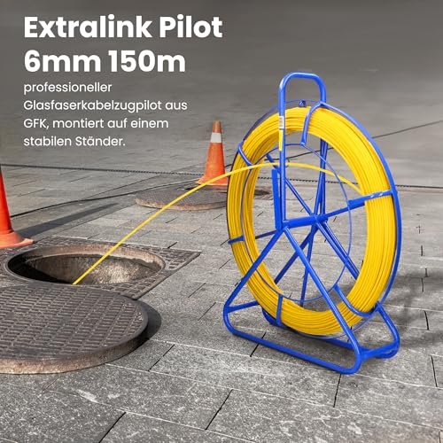 Extralink FRP Glasfaserstab 6mm Durchmesser 150m,Leerrohr mit Rollenhalter und Bremse,Einziehfeder mit hoher Elastizität und Festigkeit,Fiberglas Kabel Zubehör für optimale Installation,Glasfaser