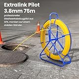 Extralink FRP Glasfaserstab 3.8mm Durchmesser 75m,Leerrohr mit Rollenhalter und Bremse,Einziehfeder mit hoher Elastizität und Festigkeit,Fiberglas Kabel Zubehör für optimale Installation,Glasfaser