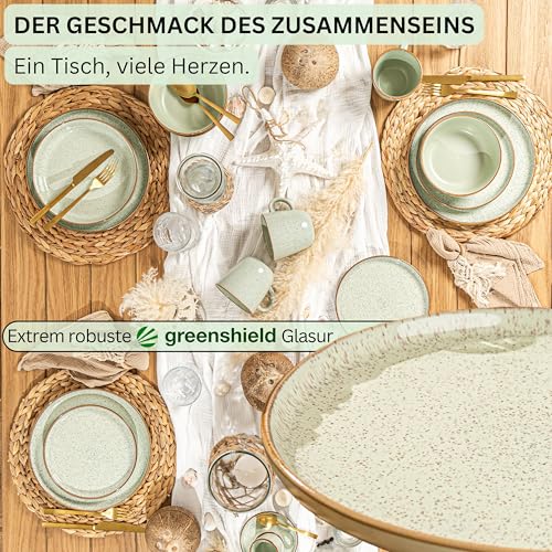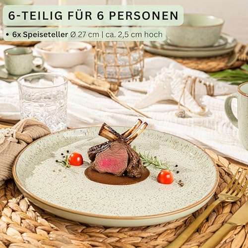 Sänger Rio Minze | Teller Set 6 Personen, 6x Speiseteller Set aus Steingut, Dinner Set kratz- mikrowellen- spülmaschinenfest, Steingut Teller Essteller mintgrün| VALUE COLLECTION