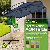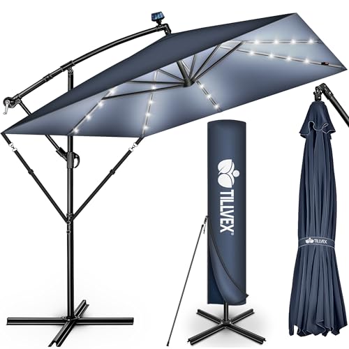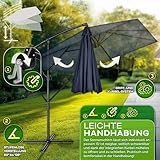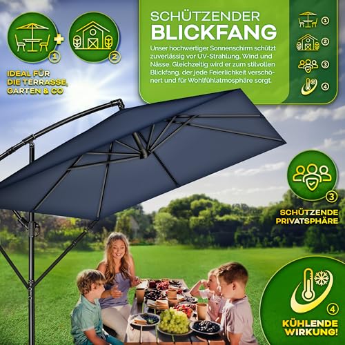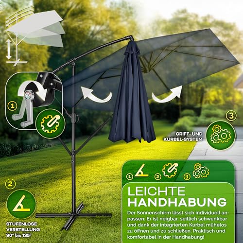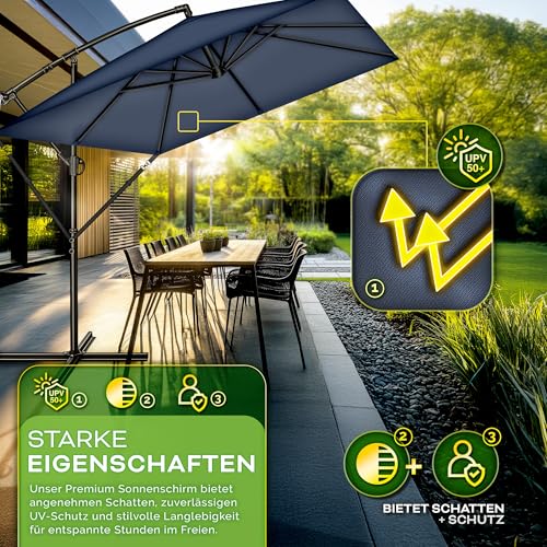 TILLVEX Alu Sonnenschirm Rechteckig ø 330 cm Navy-Blau + Abdeckung mit Kurbel Ampelschirm Eckig mit Ständer & Windschutz Gartenschirm UV-Schutz Aluminium