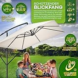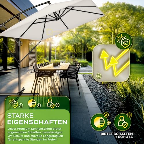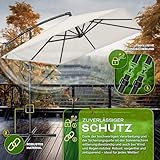 TILLVEX Alu Sonnenschirm Rechteckig ø 330 cm Beige + Abdeckung mit Kurbel Ampelschirm Eckig mit Ständer & Windschutz Gartenschirm UV-Schutz Aluminium