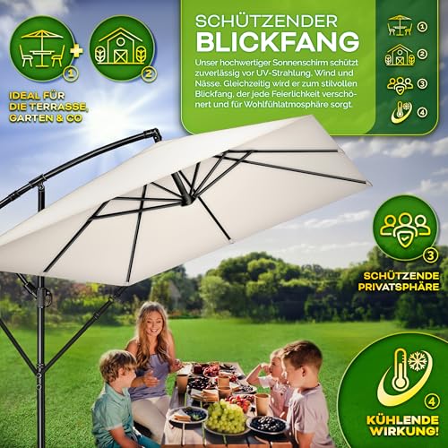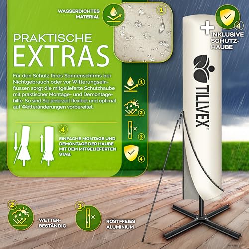 tillvex® Alu Sonnenschirm Rechteckig Ø 330 cm Beige + Abdeckung mit Kurbel | Ampelschirm Eckig mit Ständer & Windschutz | Gartenschirm UV-Schutz Aluminium | Kurbelschirm Marktschirm wasserdicht 360° drehbar TVESNS-004