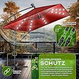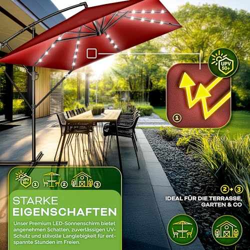 tillvex® Alu Sonnenschirm Rechteckig Ø 330 cm mit LED Solar Rot + Abdeckung mit Kurbel | Ampelschirm mit Ständer & Windschutz | Gartenschirm UV-Schutz, wasserdicht, 360° drehbar | Kurbelschirm Marktschirm TVESNS-007