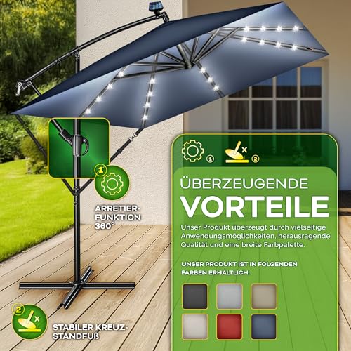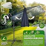 tillvex® Alu Sonnenschirm Rechteckig Ø 330 cm mit LED Solar Navy-Blau + Abdeckung mit Kurbel | Ampelschirm mit Ständer & Windschutz | Gartenschirm UV-Schutz, wasserdicht, 360° drehbar | Kurbelschirm Marktschirm TVESNS-008