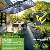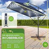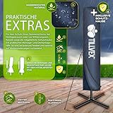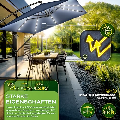 tillvex® Alu Sonnenschirm Rechteckig Ø 330 cm mit LED Solar + Abdeckung mit Kurbel | Ampelschirm mit Ständer & Windschutz | Gartenschirm UV-Schutz, wasserdicht, 360° drehbar | Kurbelschirm Marktschirm