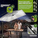 tillvex® Alu Sonnenschirm Rechteckig Ø 330 cm mit LED Solar + Abdeckung mit Kurbel | Ampelschirm mit Ständer & Windschutz | Gartenschirm UV-Schutz, wasserdicht, 360° drehbar | Kurbelschirm Marktschirm
