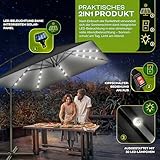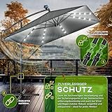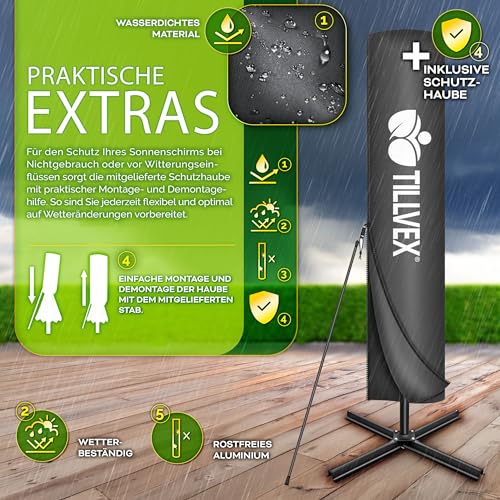 tillvex® Alu Sonnenschirm Rechteckig Ø 330 cm mit LED Solar + Abdeckung mit Kurbel | Ampelschirm mit Ständer & Windschutz | Gartenschirm UV-Schutz, wasserdicht, 360° drehbar | Kurbelschirm Marktschirm