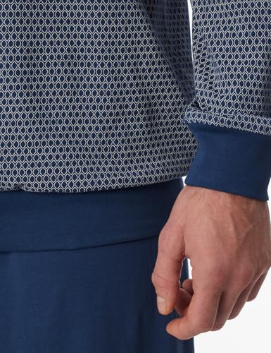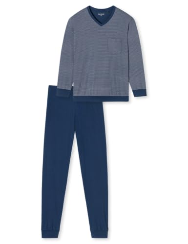 Pyjama SCHIESSER Comfort Essentials, Herren, Gr. 48, blau (800, blau), Single Jersey, Obermaterial: 100% Baumwolle, bequem lang, V-Ausschnitt, Homewear-Sets Pyjama, V-Ausschnitt, Brusttasche, Baumwolle, Langarm