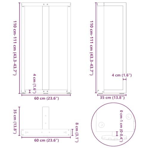 Bartischbeine T-Form 2 Stk. Naturstahl 60x35x(110-111) cm Stahl Vidaxl