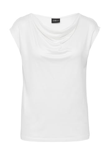 Nicht auf LagerT-Shirt S.OLIVER BLACK LABEL, Damen, Gr. 40, weiß, Interlock, Jersey, Obermaterial: 100% Viskose, unifarben, casual, regular fit taillenbedeckt, Wasserfallausschnitt, Kurzarm, Shirts, aus Interlock Jersey