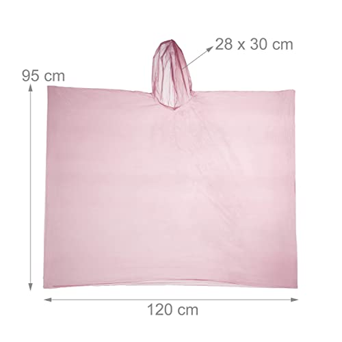 Relaxdays 100x Regenponcho Einweg, Einmal Regencape mit Kapuze, Erwachsene, Notfallponcho Damen & Herren, Unisex Regenumhang, rot