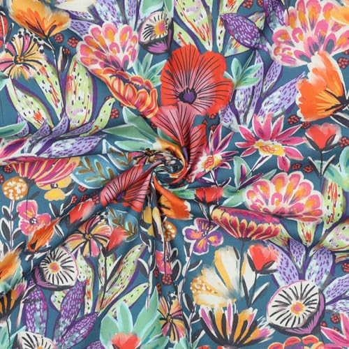VmG-Store Baumwollstoff Meterware 140cm Breite Stoffe zum Nähen Nähstoff Kinderstoff für Kissen Babykleidung Kinderkleidung DIY (Blütenzauber Digital Petrol Bc033)