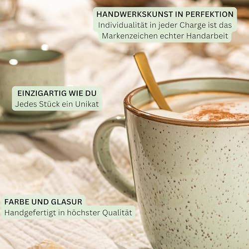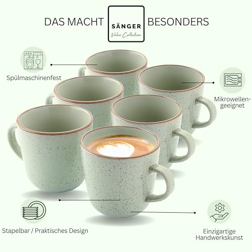 SÄNGER Rio Minze | Kaffeebecher 6 tlg, Steingut Tassen Set für 6 Personen, Tassen multifunktional, spülmaschinen- mikrowellenfest, Coffee Mug Teetasse, Kaffeetassen mintgrün 430 ml | VALUE COLLECTION
