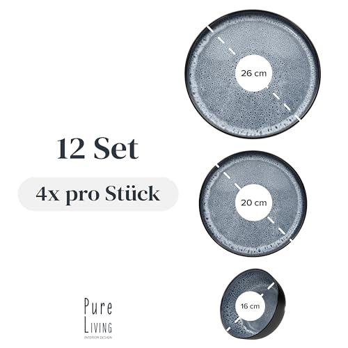 Steingut Geschirrset 4 Personen Ibiza 12 tlg. TESTSIEGER, Traumhaftes Mediterranes Steingut Geschirr Set, Schüssel- und Teller Set, Tafelservice 4 Personen, Geschirrsets Pure Living in Rauchblau