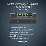 NETGEAR 5-Port Gigabit Ethernet Unmanaged PoE+ Switch (GS305PP): mit 4 PoE+ bei 83 W, Desktop- oder Wandbefestigung