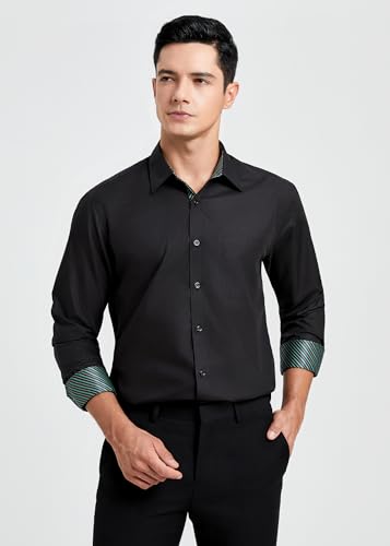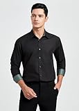 HISDERN Herren Hemd Freizeithemd Langarmhemd Formelle Businesshemden Langarm Freizeithemden Regular Fit Hemden Shirt Schwarz M