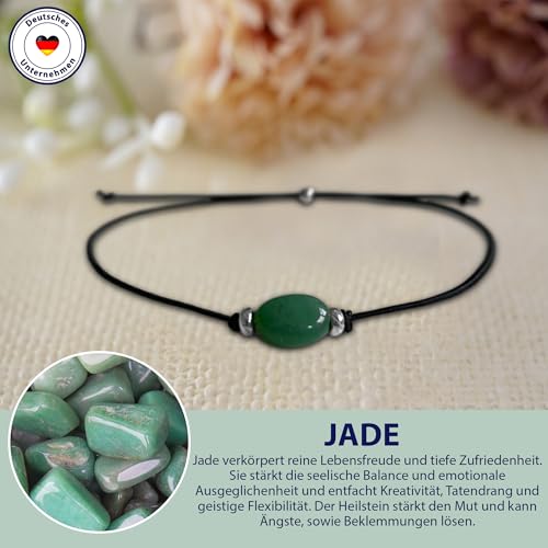 Glücksschmiedin – Edelstein Armband mit Jade & Silberperlen – Heilstein für Lebensfreude & Kreativität – Geschenk-Set mit Wunschkarte – Handgefertigt in Deutschland