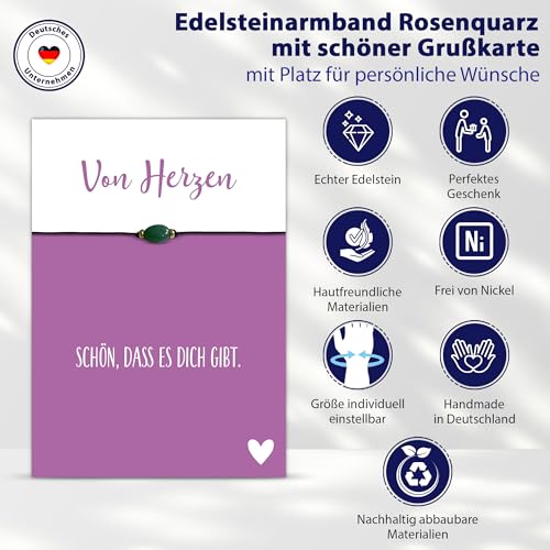 Jade Edelstein-Armband und Von Herzen Karte, Geschenk für Freunde, handmade