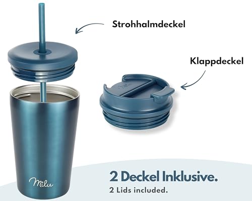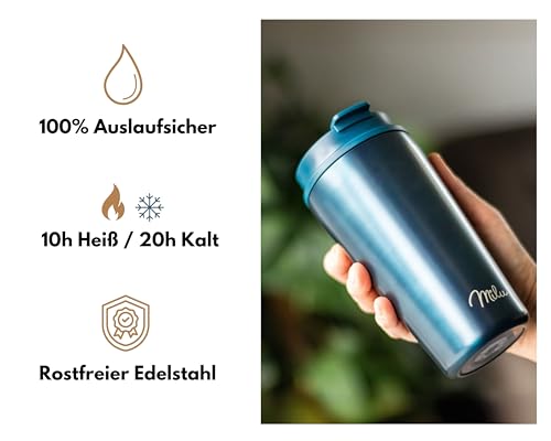 Milu Thermobecher 500ml - 100% Auslaufsicher - Edelstahl Kaffeebecher to go isoliert mit Strohhalm hält 10h heiß / 20h kalt, BPA-frei (Grün, 500ml)