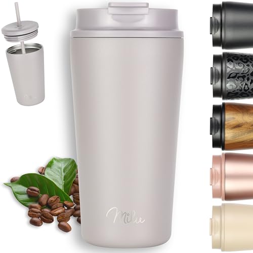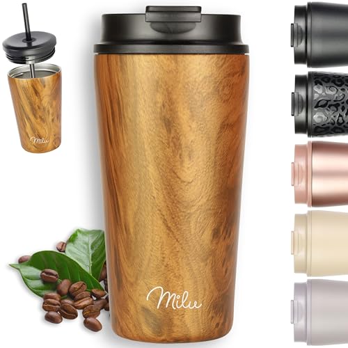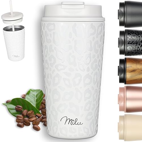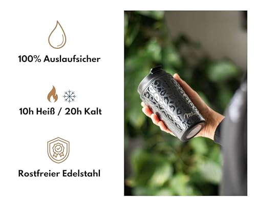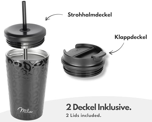Milu Thermobecher 500ml - 100% Auslaufsicher - Edelstahl Kaffeebecher to go isoliert mit Strohhalm hält 10h heiß / 20h kalt, BPA-frei (Black Leopard, 500ml)