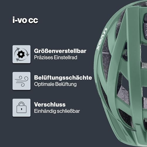 uvex i-vo cc - Leichter Allround-Helm für Damen und Herren - individuelle Größenanpassung - erweiterbar mit LED-Licht - Moss Green matt - 52-57 cm