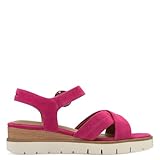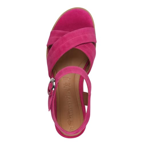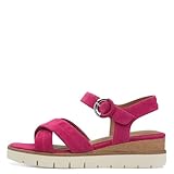 Keilsandalette TAMARIS, Damen, Gr. 39, pink (fuchsia), Ziegenveloursleder, Schuhe, Riemchensandale, Sommerschuh mit dezenten Ziernähten