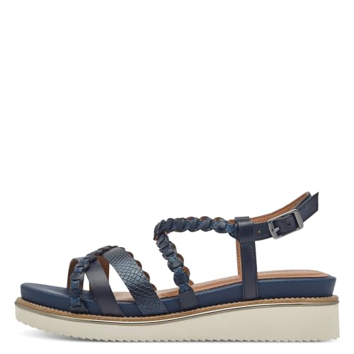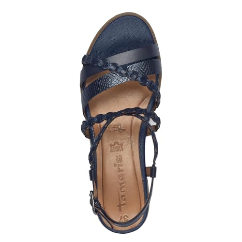 Keilsandalette TAMARIS, Damen, Gr. 40, blau (navy), Leder, Lederimitat, Schuhe, Riemchensandale, Sommerschuh mit verstellbarer Schnalle