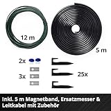 | lieferumfang | Mähroboter, 1x 4,0 Ah Plus Akku, 5 m Magnetband, 25x Befestigungshaken, Ladestation, 3x Ersatzklingen, 12 m Leitkabel, 4x Befestigungsschrauben, 2x Verbindungsklemmen |