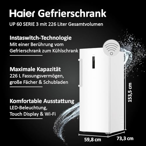 Haier Gefrierschrank mit Abtauautomatik Up 60 SERIE 3 H4F226WEH1 I Total No Frost Tiefkühlschrank, 226 L Kapazität I Eisschrank auch als Kühlschrank nutzbar I Freezer mit Wi-Fi, Touchscreen