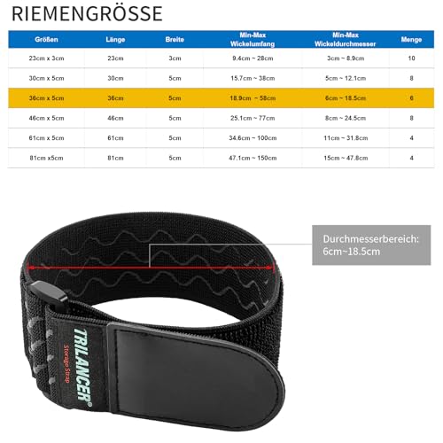 Trilancer Gurtbänder 36 x 5cm, Elastische Gurte mit Klettverschlüssen, Klettgurte und Packriemen für die Organisation Ihrer Verlängerungskabel, Schläuche, Für Fahrrad, Werkstatt,Hosengummi (6er-Pack)