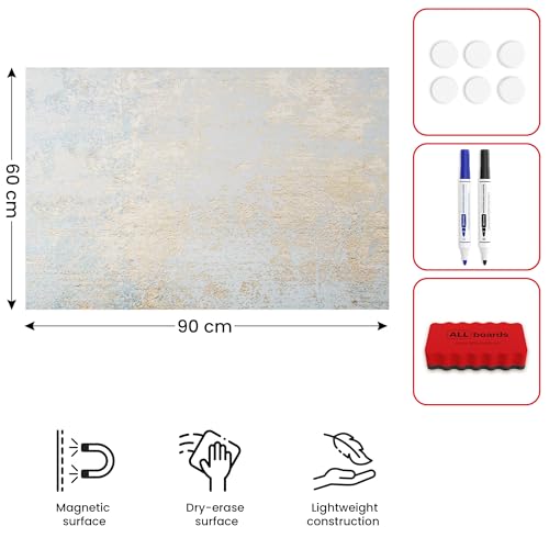 ALLboards Metallische Magnettafel GOLDENER BETON, 90x60cm MetalBoards Memoboard für jede Art von Magneten Magnetpinnwand + GRATIS Zubehörset