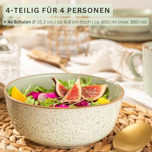 Sänger Rio Minze | Steingut Schüssel Set 4 teilig, Müslischalen für 4 Personen, Schalen multifunktional, kratz- mikrowellen- spülmaschinenfest, Tiefe Teller mintgrün 600 ml | VALUE COLLECTION