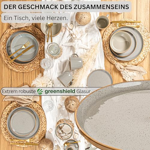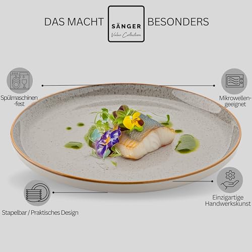 Sänger Rio Perlgrau| Teller Set 4 Personen, 4x Speiseteller Set aus Steingut, Dinner Set kratz- mikrowellen- spülmaschinenfest, Steingut Teller Essteller grau| VALUE COLLECTON