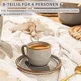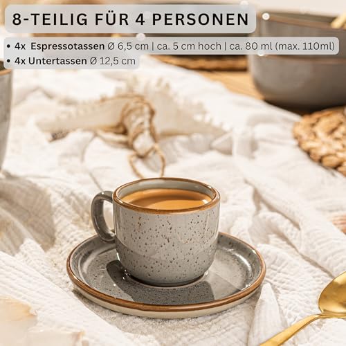 Sänger Rio Perlgrau | Espressotassen Set 8 teilig, Tassen Set 4 Personen, Espresso- & Mokkatassen, kratz- spülmaschinen- mikrowellenfest, 4xTassen & 4xUntertassen grau 80 ml | VALUE COLLECTION