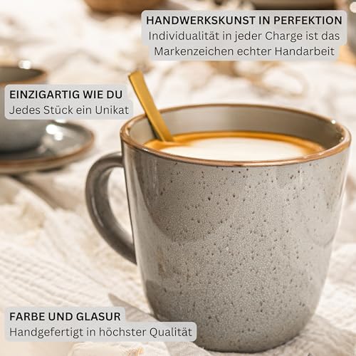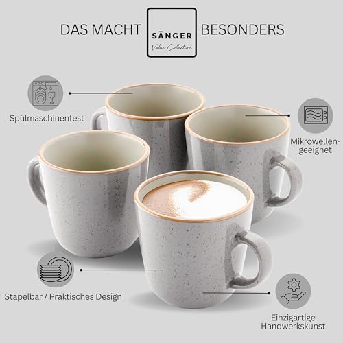 SÄNGER Rio Perlgrau | Kaffeebecher 4 teilig, Steingut Tassen Set für 4 Personen, Tassen multifunktional, spülmaschinen- mikrowellenfest, Teetasse, Kaffeetassen grau 430 ml | VALUE COLLECTION