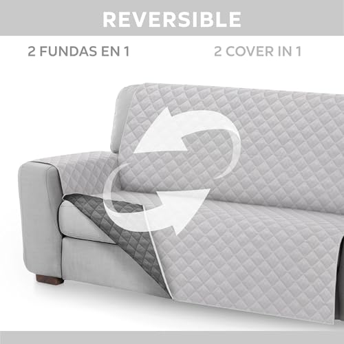 Textilhome Sofa Überzug MALU, Sofabezug 2-Sitzer (110 cm), Couch Überzug Gepolstert & Wende, Sofaschoner SofaÜberwurf Schutzdecke, Universell, Haustierfreundlich, Farbe Hellgrau