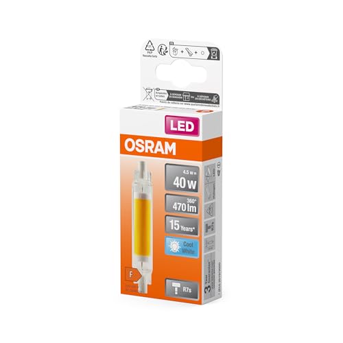 Osram LED Slim Line schlanke multicolor LED-Lampe mit R7s-Retrofit-Sockel, 4.5 W / 470 lm, klar, kaltweißes Licht mit 4000 K, nicht-dimmbar, IP20, bleifreies Glas, 16 mm Durchmesser.