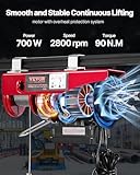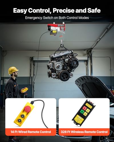 VEVOR Elektrischer Flaschenzug, 200 kg, 230 V, elektrische Seilwinde mit 100 m kabelloser und 4,2 m kabelgebundener Fernbedienung, 12 m Hubhöhe mit Einzelkabel, Einzel-/Doppelschlingen, Hebezeug