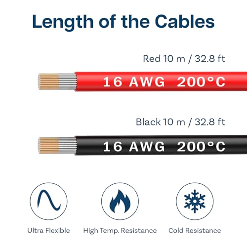 MMOBIEL 16 AWG Silikon Elektronik Kabel - 16 Gauge (1,31mm²) Verzinnte Kupferkabel - 2 Separate Kabel Rot & Schwarz Jede 10m / 32.8ft für RC, Drohnen, 3D Drucker, Batterien, Sprecherkabel, Led Strips