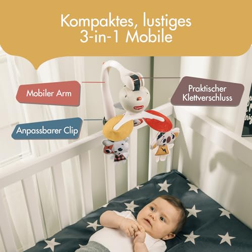 Tiny Love Mobile für unterwegs, 3-in-1 Musik Mobile Baby elektrisch, 0+ Monate, tragbares Mobile Babybett, 3 Befestigungsmöglichkeiten, 5 Melodien, 30 Minuten Musik ohne Unterbrechung, Tiny Rockers