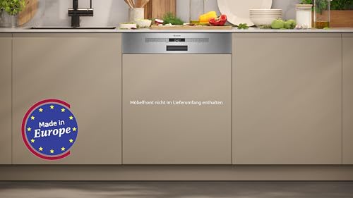 NEFF S145HTS04E, N 50, Smarter Geschirrspüler, Teilintegriert 60 cm, Spülmaschine mit Besteckkorb, sehr leise, starke Reinigung mit Chef 70°C, Favoriten Taste, Gebürsteter Stahl, Aqua Stop