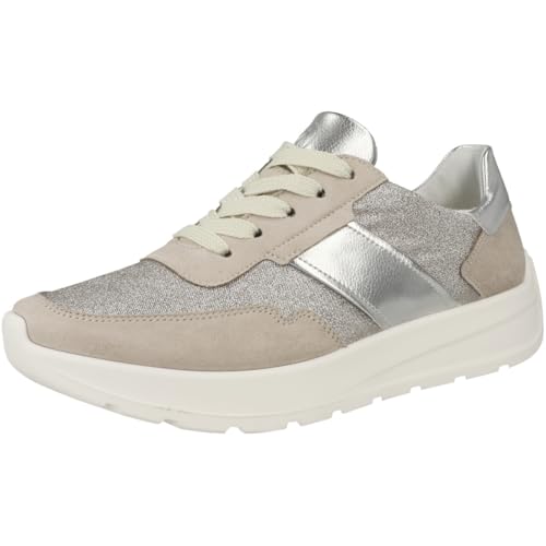 Keilsneaker ARA NEW YORK, Damen, Gr. 7,5 (41), hellbeige, silbefarben, Lederimitat, Textil, Velourslederimitat, kontrastfarbene Details, metallisierte Fasern, Schuhe, Keilsneaker, Schnürschuh in Komfortweite H (= sehr weit)