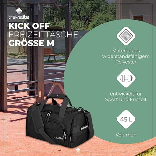 travelite Reisetasche Weekender, Kick Off, leichte Handgepäck Reisetasche für Urlaub und Sport, Schwimmbad, Klinikaufenthalt, 50 cm, 45 Liter